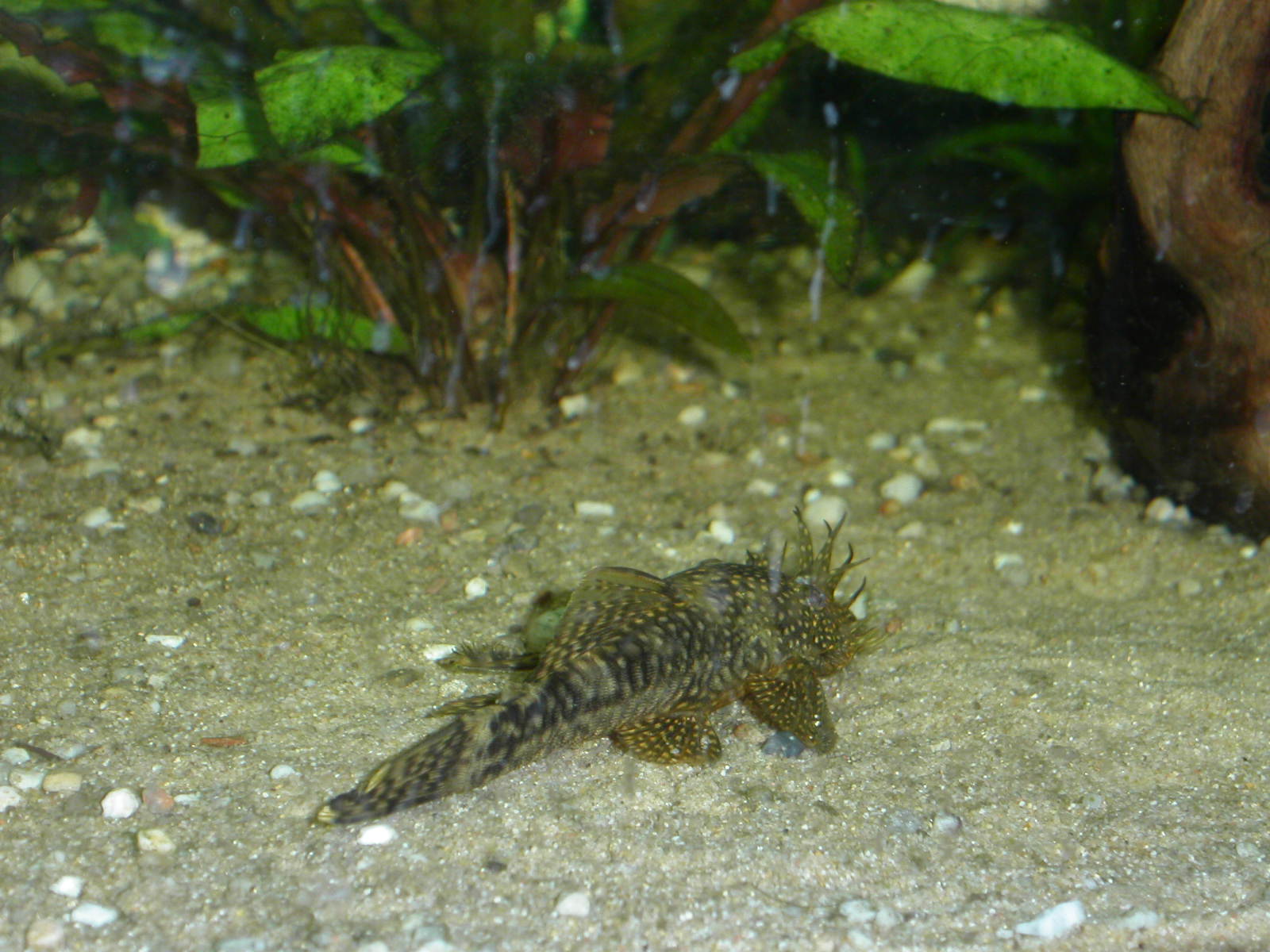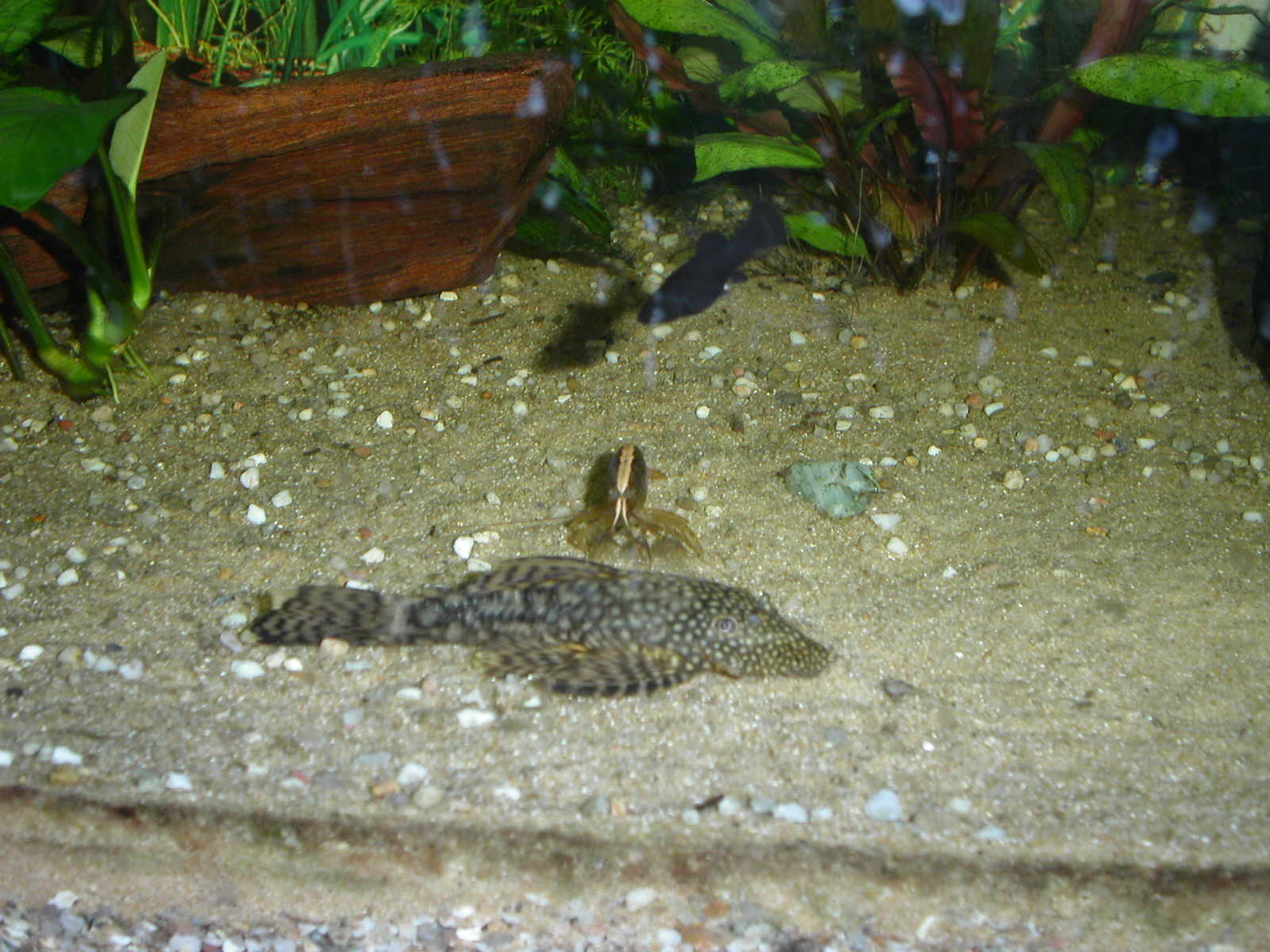 kurzbeschreibung: unterboden ist eine sandkiesmischung, im großen und ganzen bin ich recht zufrieden aber vielleicht kommt es noch zu ein und der anderen modifikation, es gibt 2 wurzeln wobei die eine der männliche ancistrus sein eigen nennt. die anderen dürfte zum revier der feurermaulbuntbarsche zählen. im vordergrund ist ein relativ freier schwimmraum den die fische gerne nutzen